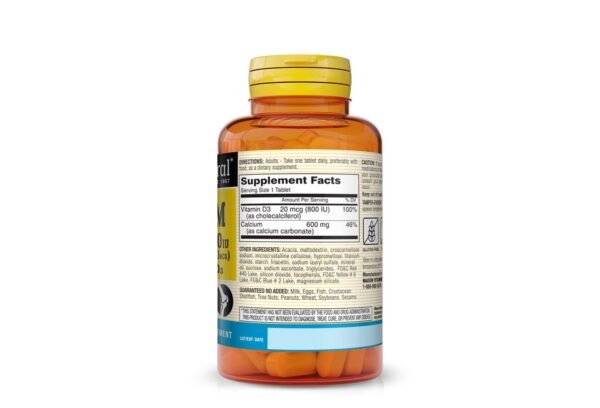 Calcium 600mg + D3 800IU Tablets are a dietary supplement formulated to support optimal bone health and overall wellness. Each tablet contains 600 milligrams of calcium, a vital mineral necessary for the development and maintenance of strong bones and teeth. Additionally, these tablets provide 800 International Units (IU) of Vitamin D3, which enhances calcium absorption and helps maintain adequate levels of calcium and phosphorus in the blood.