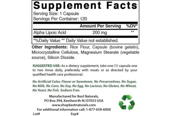 Here are some key benefits of Alpha Lipoic Acid (ALA) 200mg Capsules: