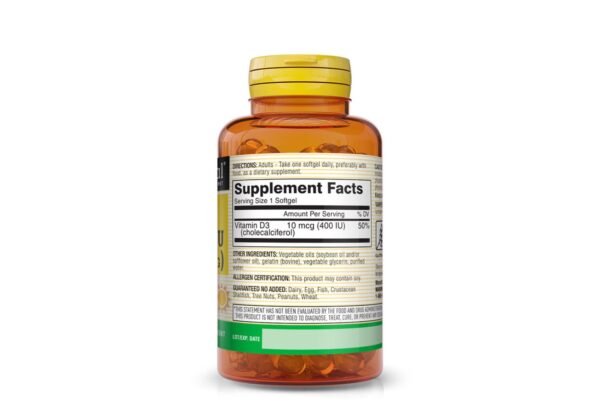D3 400 IU (10 mcg) Softgels are ideal for individuals looking to maintain optimal vitamin D levels and support overall health.