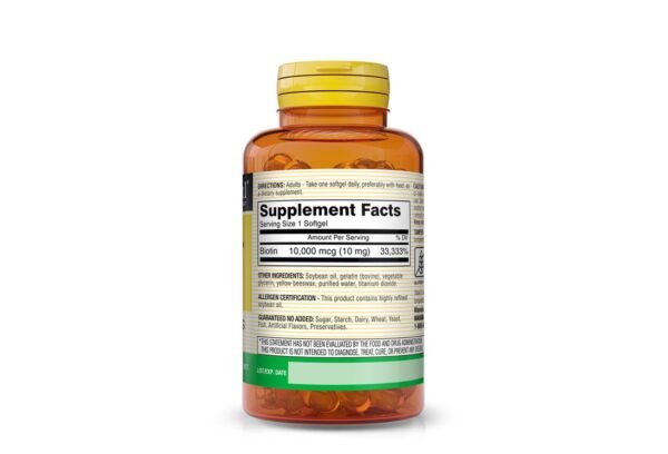 - Key Ingredient: Biotin 10,000mcg per softgel.