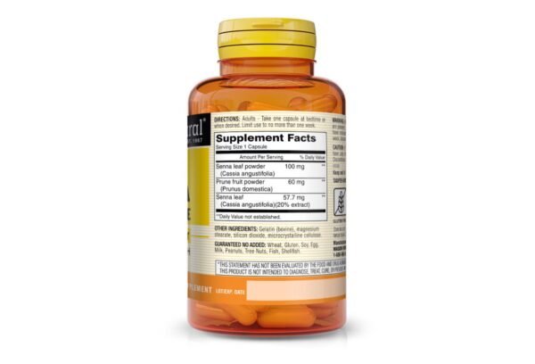 Ingredients: Prune concentrate, senna leaf extract, vegetable cellulose (capsule), magnesium stearate, silica.
